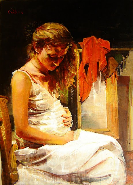 Acercarse a los países de la pintura de este artista puede llegar a equivaler a la mas prodigiosa de las aventuras .Emprendida en primer termino por su imaginación desbordante, codificada de inmediato por una serie de visiones numeradas ,en las que Venecia y la maternidad, además de expresivas fotografías y de impresionantes desnudos encuentran un lugar preponderante, y que tienen su justificación mas inmediata y a su mas acabada explicación en esos mismos otros cuadros, pequeños y en apariencias secundarios, que completan y que enriquecen notablemente a la composición principal.En la cual Marco Ortolan se revela como lo que acabadamente es, un pintor de primera línea, un heredero, seguro y confiado y de primera línea, de los bienes plásticos del Renacimiento Italiano, al cual una y otra vez alude, y no solo por razones de composición, sino en busca de las mas limpias raíces de su arte, tan profundizado y expandido que también su obra, la propia, concluye para ser tomada como nacida en pleno siglo XVI, y en ese lugar de privilegio, Venecia, cuyas aguas siguen manando, perennemente, y sin que se interrumpa jamás la vitalidad de su fuente reflujo creador.Venecia, y dentro de ella, varias obras de arte nacidas en distintas latitudes de esa Italia siempre asombrosa cuando se trata de medir la capacidad y la gran calidad de sus diversas e importantes corrientes estéticas a lo largo de tantos siglos, que consiguen empero el verdadero milagro de que esa corriente se mantenga constantemente renovada y fresca, tanto que la misma obra de Marco Ortolan parece emanada de ella, en una actitud de respeto y de gran comprensión estética, dos de las mayores virtudes de cuanto este joven Arquitecto y Pintor, en cuanto lleva a la tela.Empapado a cada momento de esas génesis de otra agua, la que baña Venecia y sus rincones mas hermosos, y a la que Marco Ortolan evoca con palabras visuales entrecortadas de animación y de admiración, porque uno e indivisible es el acento que las vincula a ambas, y una, también, la esplendida hermosura que a ambas corona.Hermosura que pende como una joya preciosa sobre las maternidades que el pintor enhebra en su rutilante estilo, o seres anónimos, entre ellos “El ahogado mas hermoso del mundo”, que encierra en si toda la sepulcral belleza de la muerte, especialmente enjaezada `para ocasión tan singular, para una cita tan imborrable. Y testimonios, todos los que este artista dibuja y pinta como los grandes maestros de todos los tiempos, en una corona de inmarcesible luz, de sostenida grandeza y de rarísima riqueza, de todo lo cual es muy alto exponente. Julio 2003. Cesar Magrini Escritor y Crítico de Arte.