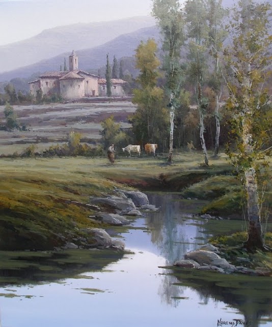 » En momentos casi caóticos, donde proliferan los «ismos» y las «encias», donde la anarquía es absoluta y donde el buen arte, en muchos casos brilla por su ausencia, donde el oficio y el saber hacer parece que no importan, donde el legado de los grandes maestros de todos los tiempos es incluso olvidado. Es como mínimo reconfortante ver aparecer -como una flor entre guijarros- artistas que como Llorenç Danés, rescatan modernizando tal vez, las enseñanzas de la más pura tradición pictórica.El, igual que los maestros de antaño y especialmente los grandes paisajistas de la escuela de Olot, sabe que hay que meterse en el paisaje, mezclarse con él para poder extraer del motivo todo lo que pueda ofrecer. No basta con saber captar la luz, el color y las formas; también hay que saber plasmar en el lienzo, la emoción que se siente ante la naturaleza, pintar las sensaciones, los sentimientos, las vibraciones que invaden el cuerpo del artista llegándole hasta el alma y que a través de su mano deja impresas en la superficie del lienzo, consiguiendo que el espectador de su obra, sienta también, las mismas emociones. A esto se le llama transmisión de sentimientos y es lo que el buen arte debe tener. El artista transmite al espectador, lo que sintió en su interior en el momento de interpretar la naturaleza, el espectador lo recibe al contemplar el cuadro y de este modo se consigue la comunicación.Llorenç Danés sabe de esto y con su buen hacer llega al alma de quien contempla sus cuadros. Al ver su obra, uno se siente como parte integrante de lo que ha pintado.El artista pequeño dios en suma, recreador humilde de lo que el Gran Creador ha realizado, procura encerrar en su lienzo un momento sublime de la creación, ofreciendo al espectador -como si de una ventana se tratara- la visión del instante elegido, dejándolo impreso para siempre. Pues la naturaleza cambia, se modifica, se transforma, no es igual todos los días, pero la obra artística realizada por Llorenç Danés, seguirá imperecedera, reflejando siempre, aquel instante que cautivó al artista y que le impulsó a tomar los pinceles, para transmitirnos la belleza del momento elegido.Así es la obra de Llorenç Danés, seria y bien construida, con una envidiable técnica conseguida a través de disciplinas escolásticas con conocimientos del color para conseguir finísimas armonizaciones. Pero es también a su vez, mensajes enviados desde la naturaleza. Capaz de proyectar emociones y sentimientos que nos llegan desde los más variados rincones por él pintados. Al contemplar sus cuadros no podemos quedar indiferentes, el arte está presente en ellos, pues ellos son arte. »