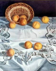 Melocotones sobre paño