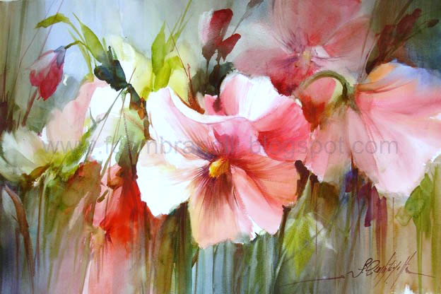son unas acuarelas preciosas, limpias y transparentes y las flores están tratadas con mucha delicadeza y buen gusto, me han encantado