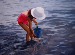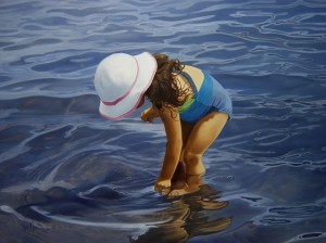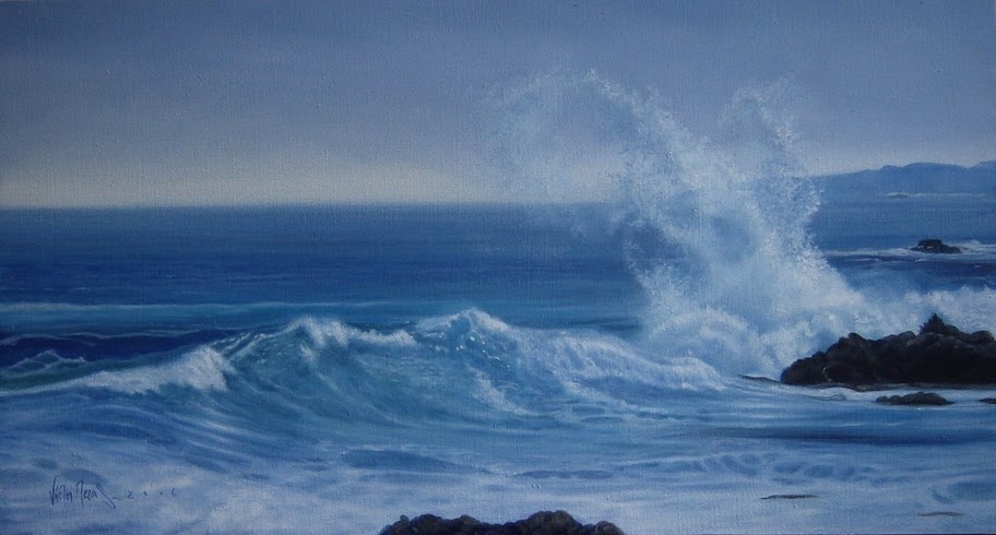 Los momentos de la vida diaria que transcurren en la región aledaña al océano donde viveVíctor Meza, en Chile, adquieren un brillo grandioso y mítico en sus cuadros híper realistas. Sus trabajos de óleo sobre tela de gran minuciosidad parecen atmosféricamente estilizados, matizados por la memoria, descolorados por el sol o empañados por la luz grisácea de nieblas y nubes. Una admirable sensibilidad a la luz está presente en todo el trabajo de Meza, y ésta se extiende sobre aguas mansas, retumba desde formaciones de nubes monumentales o se acumula y resplandece desde superficies suaves y bañadas por el sol. Por ello, dicha espectacular atención a la luz y la sombra acentúa la calidad surrealista de las texturas exquisitamente logradas, un sentido que, en la ausencia del objeto mismo, él ha exagerado sus propiedades para transmitirlas en forma más viva.