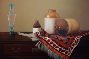 Es notable el logro alcanzado en sus bodegones y naturalezas muertas, donde la atmósfera es propuesta como en un paisaje, escogiendo tonos apastelados y controlados valores.