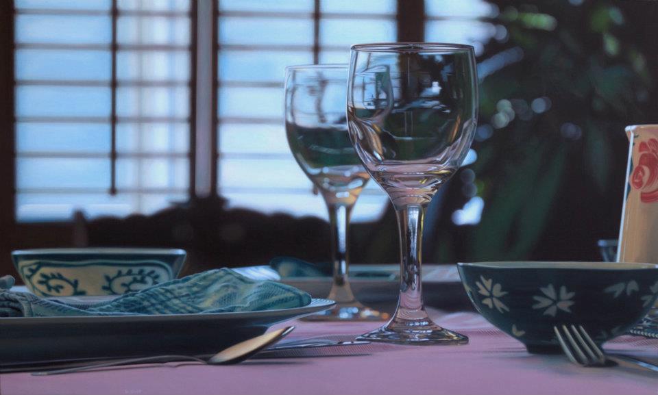 ¿Qué número de pincel usaste para plasmar los reflejos de la ventana en el fuste de la copa?