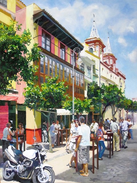 COLORES VIBRANTES Y CALIDOS, LOS CLAROS Y OSCUROS REFLEJAN MUY BIEN LA LUMINOSIDAD DE LA CALLE
