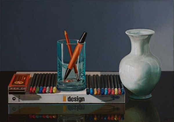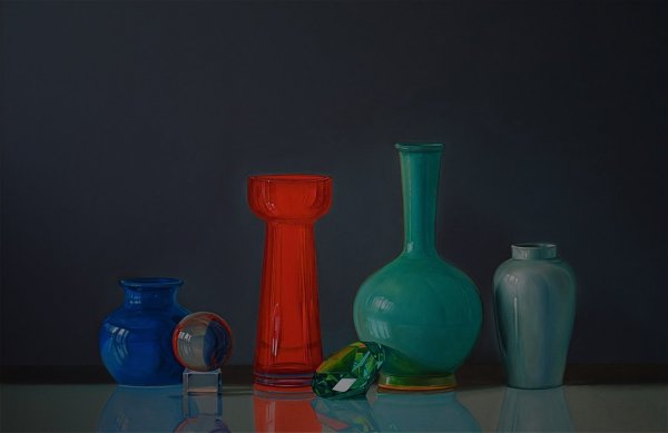 To finish my works I try to paint the air. In my paintings it is the air that produces the light that gives shadows to the objects like the sun plays with the nature. To transform this magnificent play of light, reflections and shadows with oil colours on canvas it is necessary to retouch the paintings hundreds of times.