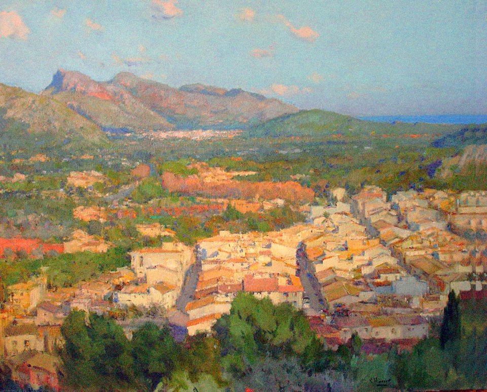 El cabo de Formentor visto desde la ciudad de Pollença, óleo sobre lino, 100 x 81 cm., Vicente Herrero