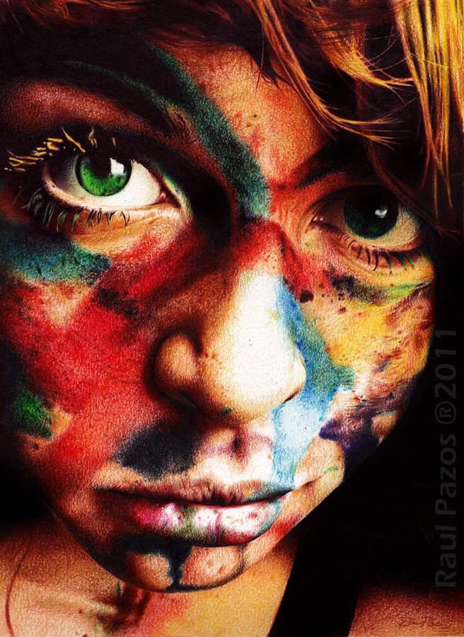 dibujo en grafito , utilizando lapices de color.