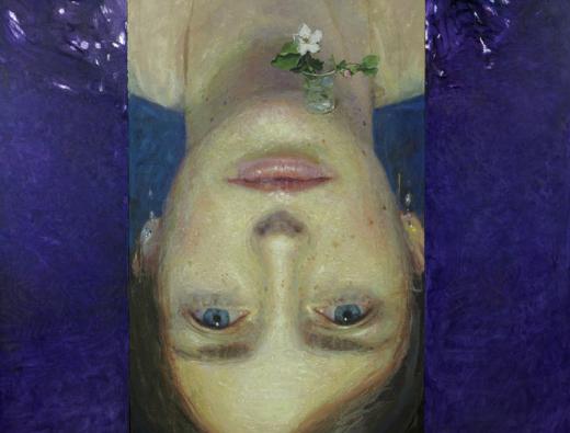 Golucho – Vaso con flor de membrillo y Maria invertida – Oleo/tabla – 120 x 117 cm