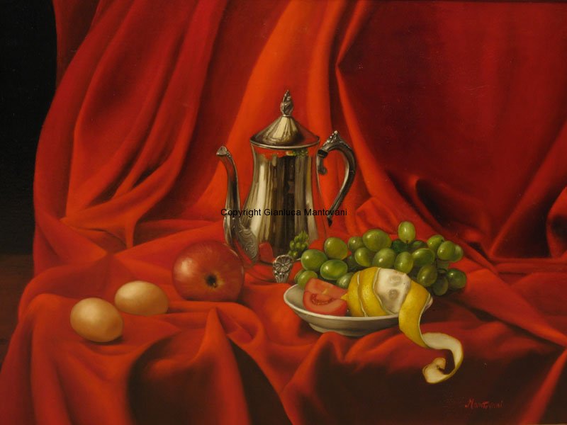 Se va acercando a la pintura realista, expresión artística en la que se encuentra más a gusto. Su investigación por la perfección y por plasmar la realidad se convierte en una fuente de estímulo y de satisfacción personal, y todo esto culmina con su gran capacidad para reproducir detalles en el realismo más puro. Los colores que utiliza Mantovani en sus pinturas están vivos y densos como la sangre, palpables y espesos.