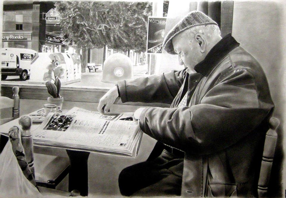«Glancing the newspaper» Basik pencil on paper, 39.5 x 27.5 inch, Francisco Motto