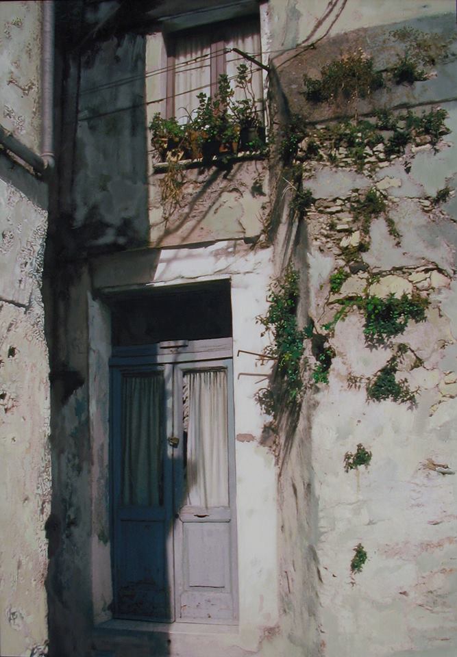 El realismo lírico de Giovanni Marziano. El fuerte olor a trementina, a pastel, a tabaco, a marcos de madera, te rodea al entrar en el estudio de Marziano. Entre pinturas, marcos de cuadros, libros, revistas, frascos y tubos de pintura, pinceles y paletas, el encanto del estudio ejerce su poder desde el principio. El encuentro con el Artista es extraordinario por la simbiosis mágica entre lugar, pinturas y autor. No te das cuenta, si no es poco a poco, de la música de fondo, que va desde Mozart a Guccini. Se percibe un agradable ambiente de serenidad y te quedas encantado por una atmósfera intemporal. Marziano habla y te das cuenta de cuántas horas de silencio, de soledad y de reflexión inspiran sus razonamientos. Habla poco de su pintura, prefiere hacerlo de su amor por la pintura, de la suerte de haber conocido a Piero Guccione, Franco Sarnari, Sonia Alvarez y, en la campiña toscana, a Piero Vignozzi. Sus ojos, acostumbrados a mirar un poco entornados, sonríen y se velan de nostalgia al recordar a Renzo Vespignani, cuando el Maestro le dijo familiarmente: «Tienes que tutearme”. Te cuenta de Giorgio Michetti, Sergio Saroni, Massimo Pulini… Te habla de la confirmación de haber elegido el difícil camino del realismo frente a las obras del Nuevo Realismo Español, admiradas mientras éstas se exhibían junto a las suyas en la prestigiosa Galleria Marieschi de Milán, y de la sorprendente afinidad con artistas desconocidos hasta entonces, en primer lugar Antonio López García y Guillermo Muñoz Vera. A continuación te habla de la visita de Paola Forni a su estudio y del inicio de una corta actividad de exposiciones en la Galería Forni de Boloña, lugar de interés, desde hace años, para los mejores conocedores de la figuración más refinada. Aún expresa nostalgia discutiendo de los años del Realismo existencial de Gianfranco Ferroni, de Giuseppe Banchieri. En sus palabras, puedes desandar los caminos de los últimos treinta años de la pintura italiana, y sin misterios, identificas los puntos de referencia, los compañeros del artista de Calabria. También descubres que, a pesar de vivir en la frontera de Europa, no se ha perdido nada del debate artístico que se ha ido articulando con el tiempo. Es más difícil conseguir que Marziano hable de sí mismo, pero cuando lo hace, como en sus pinturas, desnuda su corazón. La actividad artística de Giovanni Marziano se fundamenta en aquel clima especial que caracteriza el período inmediato a la posguerra, el mismo clima que marcó para siempre a artistas como Vespignani y Ferroni. Pero con diferentes efectos. Vespignani y Ferroni habían vivido los horrores de la guerra, habían vagado en los escombros humeantes de sus ciudades, preservando sin duda un sentido dramático de la existencia. Marziano, que pertenece a la siguiente generación, pudo leer en los ojos de los adultos las heridas del pasado reciente que debía ser olvidado y creció en los años de la reconstrucción material y moral del país. Se ilusionó con un futuro de paz y prosperidad. Sin embargo, en sus recuerdos de infancia, quedarán para siempre fijados los arañazos de una época, llamada «milagro económico» en el Norte y «Fondo para el Sur» en el Sur, con una brecha que, aún hoy, es tristemente obvia. Los patios de las viviendas (el llamado «Piano Casa» de Fanfani), la roya en las escaleras, el esmalte desconchado por la infiltración temprana de agua de lluvia, musgo en los techos de tejas, las primeras antenas de televisión, las viejas puertas de viejos bajos abandonados: he ahí el repertorio que, desde su adolescencia, caracteriza la obra pictórica de Giovanni Marziano. Participación pictórica temprana, herencia genética de su padre, juez de día, autor reservado de refinados pasteles en el silencio de la noche. Con los pasteles, Marziano hereda de su padre el sentido de la pintura como un lugar de la poesía y de la modestia, de la discreción y la elegía. Incluso hoy en día, después de cincuenta años de intensa actividad artística, algunos de sus cuadros llevan el título de «Diario secreto», lo que confirma una vocación constante a la introspección y el realismo lírico. Como páginas de la misma historia, con un sello fuertemente autobiográfico, las pinturas de Marziano siguen siendo un valioso registro de sueños, esperanzas y decepciones, soledades y amores de un artista cada vez más apreciado.