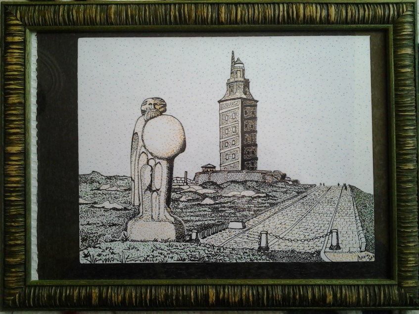 Autor;Mario Cuturi/Rua Nova N °1-3°-DP;15172- A Coruna-Spain.Titulo de la obra;Torre de Hercules.Tecnica;Rotulador.Tamano;18 X 23 cm