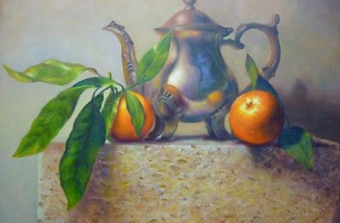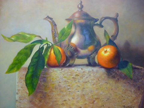 Autor: Edgar Ameneyro Jimenez Titulo: bodegón con mandarinas Tecnica: oleo sobre lienzo, 65×80