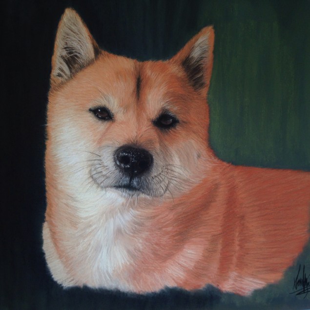Autor: María José Sierra Lanzas Titulo: Shiba Inu «Hachiko» Dimensiones: 70×50 cm Tecnica: pastel sobre canson Touch