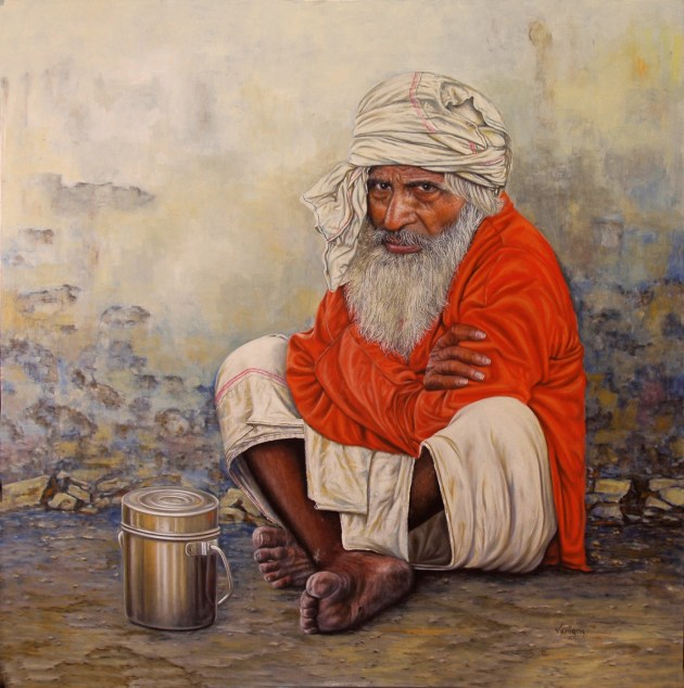 Autor. Pedro Vergara Título: Hombre de la India. Medidas: 100×100 cm. Técnica: Óleo / tabla
