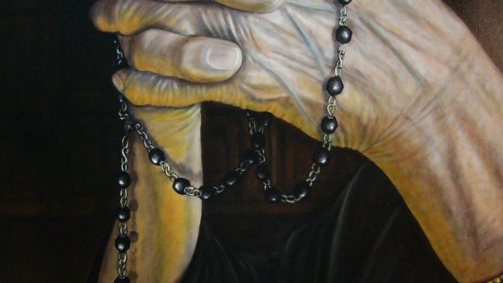 Autor: Felipe Erena Damas, titulo: ruega por nosotros, dimensiones: 50 figura, 116×89,oleo sobre lienzo