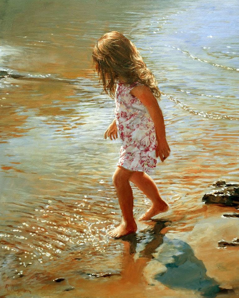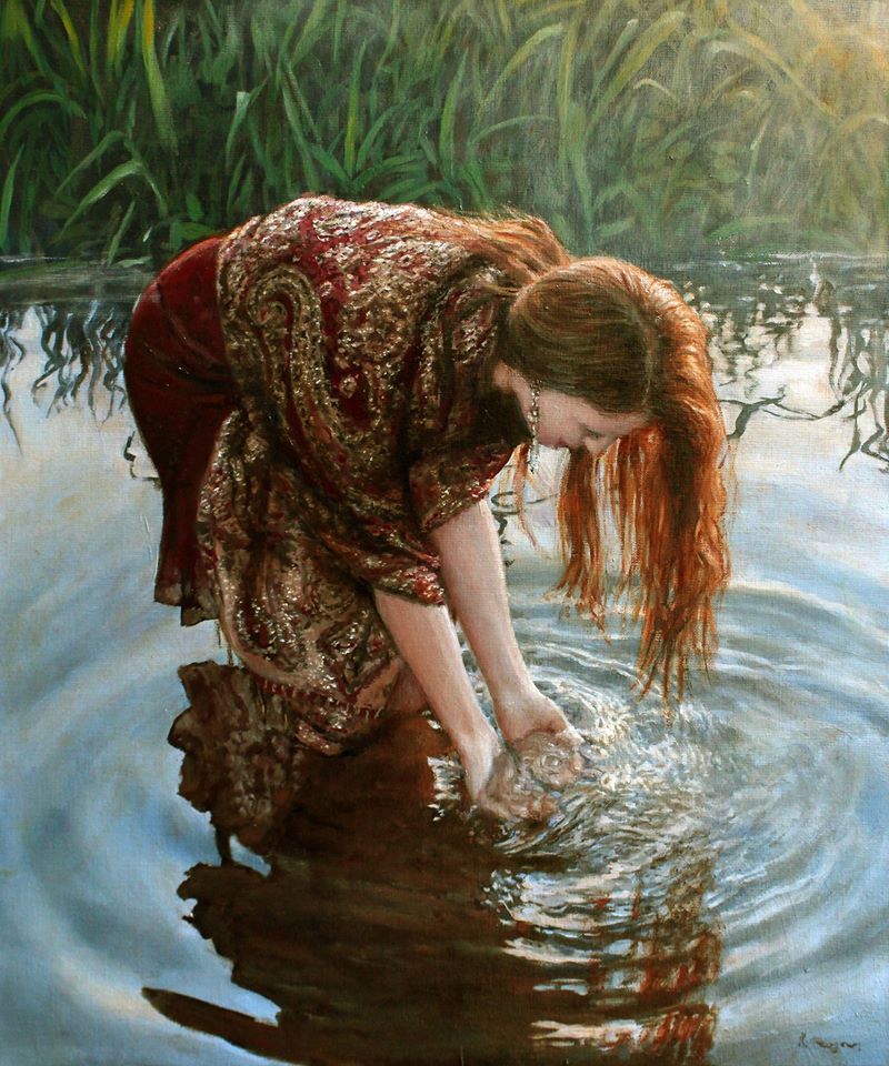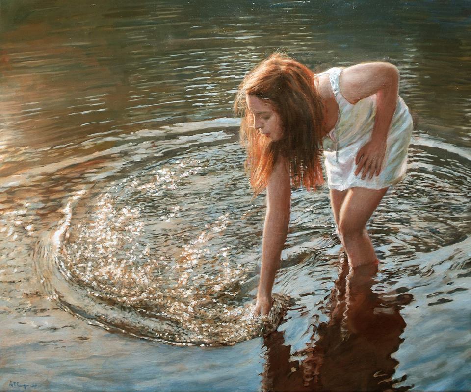 El reflejo del agua mejora la imagen de la mujer de mirada introspectiva, un ideal de belleza que contrasta con el rápido ritmo de la sociedad actual. Ralf pone en sus figuras una silenciosa posición de descanso y contemplación.