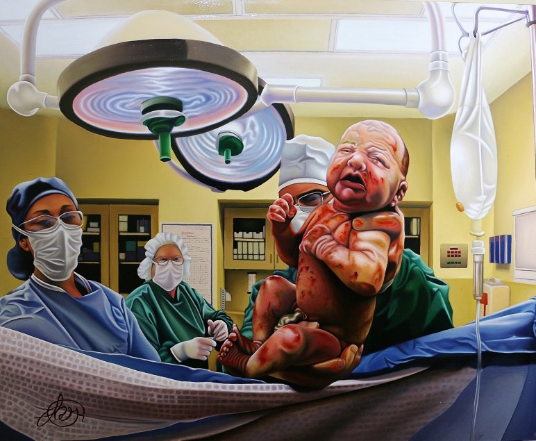 Autor – Luis Rico titulo- bienvenido a casa dimenciones- 152 cm ×121cm Tecnica-oleo en canvas