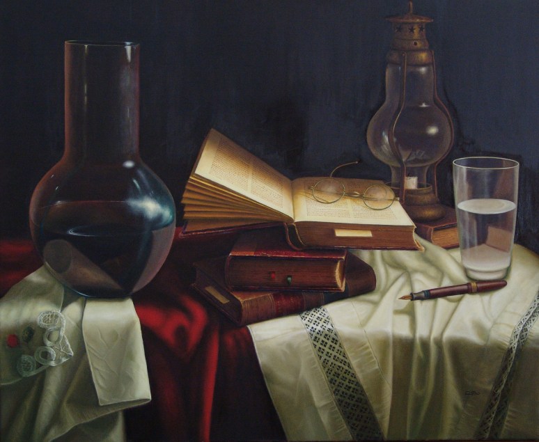 AUTOR: Julio Cobo TÍTULO : Bodegón DIMENSIONES 73 x 60 cm. TÉCNICA : Óleo sobre lienzo