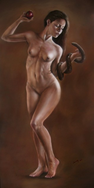Autor: Gerardo Monroy Vergara Titulo: El secreto de Eva ,Oleo sobre tela 100 cm x 80 cm