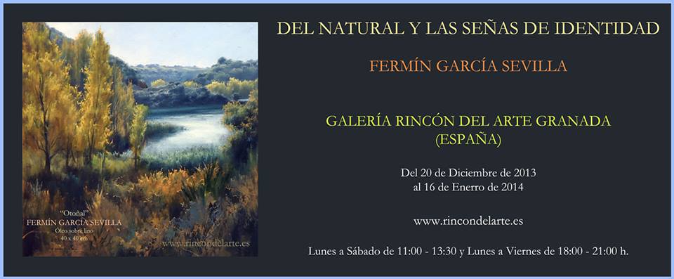 Exposición individual que bajo el título «DEL NATURAL Y LAS SEÑAS DE IDENTIDAD» de Fermin Garcia Sevilla, inauguración el día 20 de Diciembre de 2013 en , Galería Rincón del Arte en Granada
