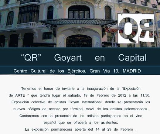 Exposición Artistas Goyart Internacional, en la que tendra lugar el 18 de Febrero, y que podran visitar hasta el 29 del mismo mes, en Centro cultural de los Ejercitos, en Gran Via, 13, Madrid. y en la que participan entre otros Tomas Castaño.