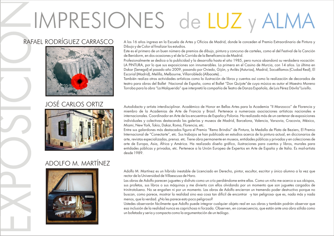* Exposición : “ARTE CONTEMPORANEO DE ESPAÑA EN SIBERIA”. Inauguración: 9 de agosto 2011, en la sede de la Federación de Artistas Visuales y Plásticos de Krasnoyarsk. Finaliza a principios de septiembre.